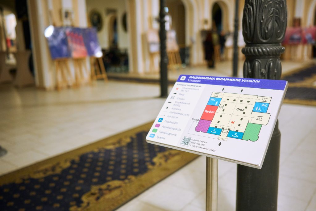 Інше — це доступність простору. Для осіб з вадами зору ми вже встановили мнемосхеми та відповідне маркування, щоб орієнтуватися у будівлі було легше. Для слухачів, котрі пересуваються на колісних кріслах, маємо пандус у Колонну залу з боку парку. Працюємо над встановленням ліфту між поверхами, аби доступним був також Музичний салон — адже крім того, що там проходять окремі події, це іще й укриття — критично важливе в нашій інфраструктурі.